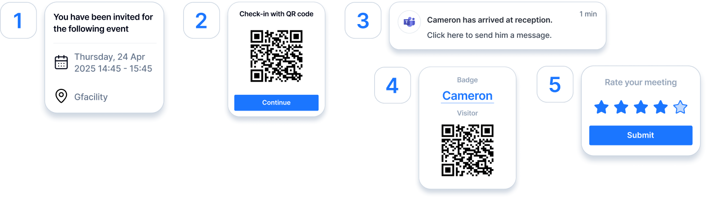 Automate the entire visitor process: from registration and notifications to badge printing and security checks (GDPR-proof).