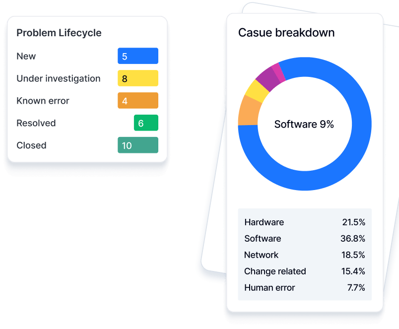 Go beyond firefighting with AI-powered root cause analysis. Spot recurring issues, link incidents automatically, and prevent problems before they disrupt your business.