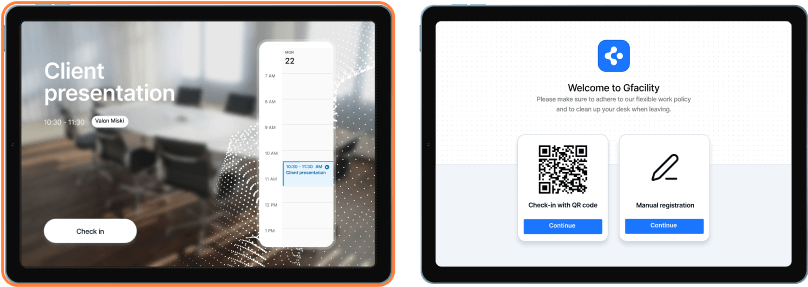 Streamline room bookings and visitor check-ins with smart signage and intuitive self-service kiosks - designed to enhance front-desk efficiency and workplace experience.