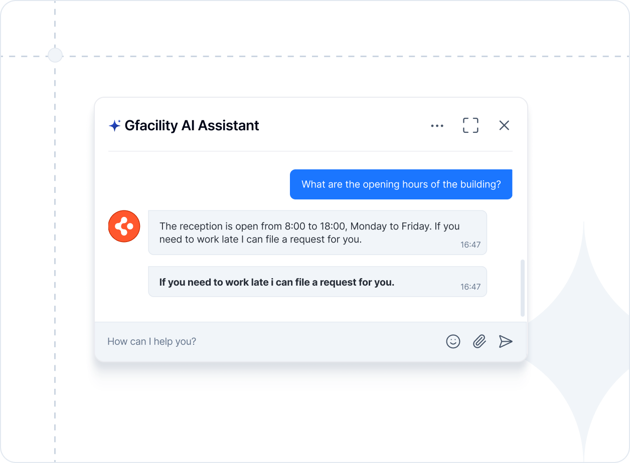 Gfacility helps facility and workplace teams cut waste, reduce no-shows, and keep services running smoothly - without extra effort. From assistants that answer employee questions to agents that adjust services automatically, Gfacility AI acts as your digital colleague - always safe, always under your control, and freeing your teams to focus on what really matters.