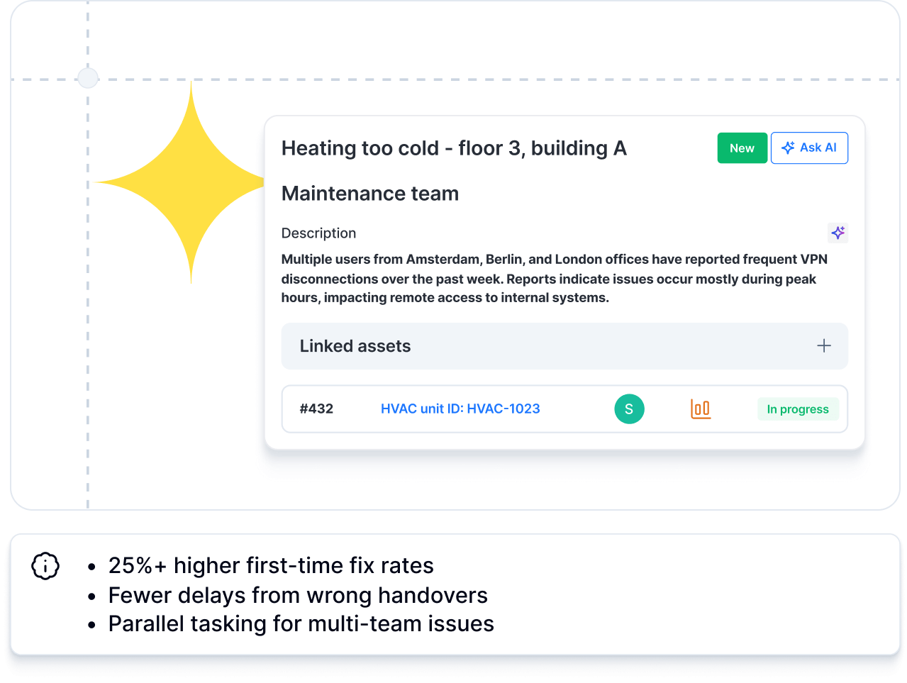 A facility helpdesk is the central point where employees log issues and requests related to buildings, services, or workplace support. It ensures quick routing, fast resolution, and a seamless occupant experience.