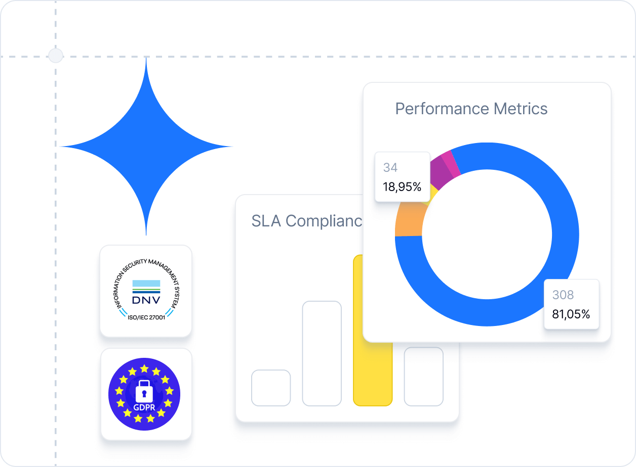 Every metric, change, and SLA is fully traceable with audit-ready reports. Stay aligned with ISO, GDPR, and governance standards while proving the value of IT service management to stakeholders.